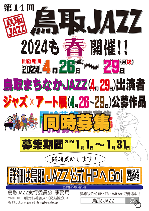 | お問い合わせ | 鳥取JAZZ実行委員会 事務局 メール:tottori-jazz@flyingbeagle.jp |