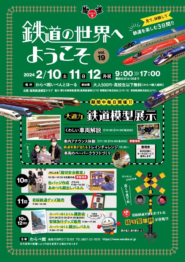 | 関連サイト | https://warabe.or.jp/event/welcome-to-the-world-of-railways/ |