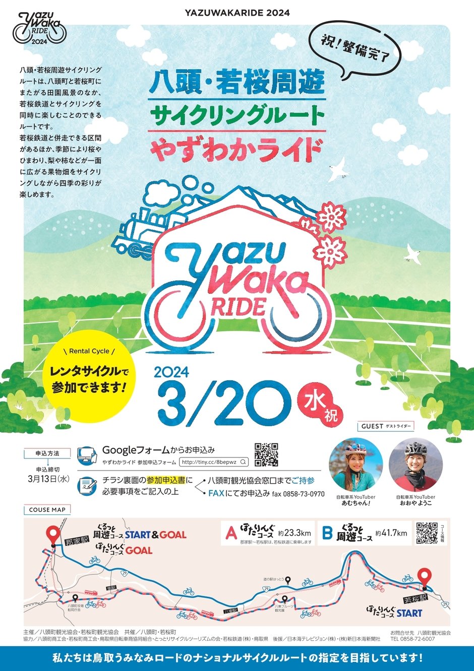当日は、自転車系YouTuberあむちゃん!さんとおおやようこさんをゲストライダーにお迎えし、八頭・若桜でサイクリングを楽しみます!