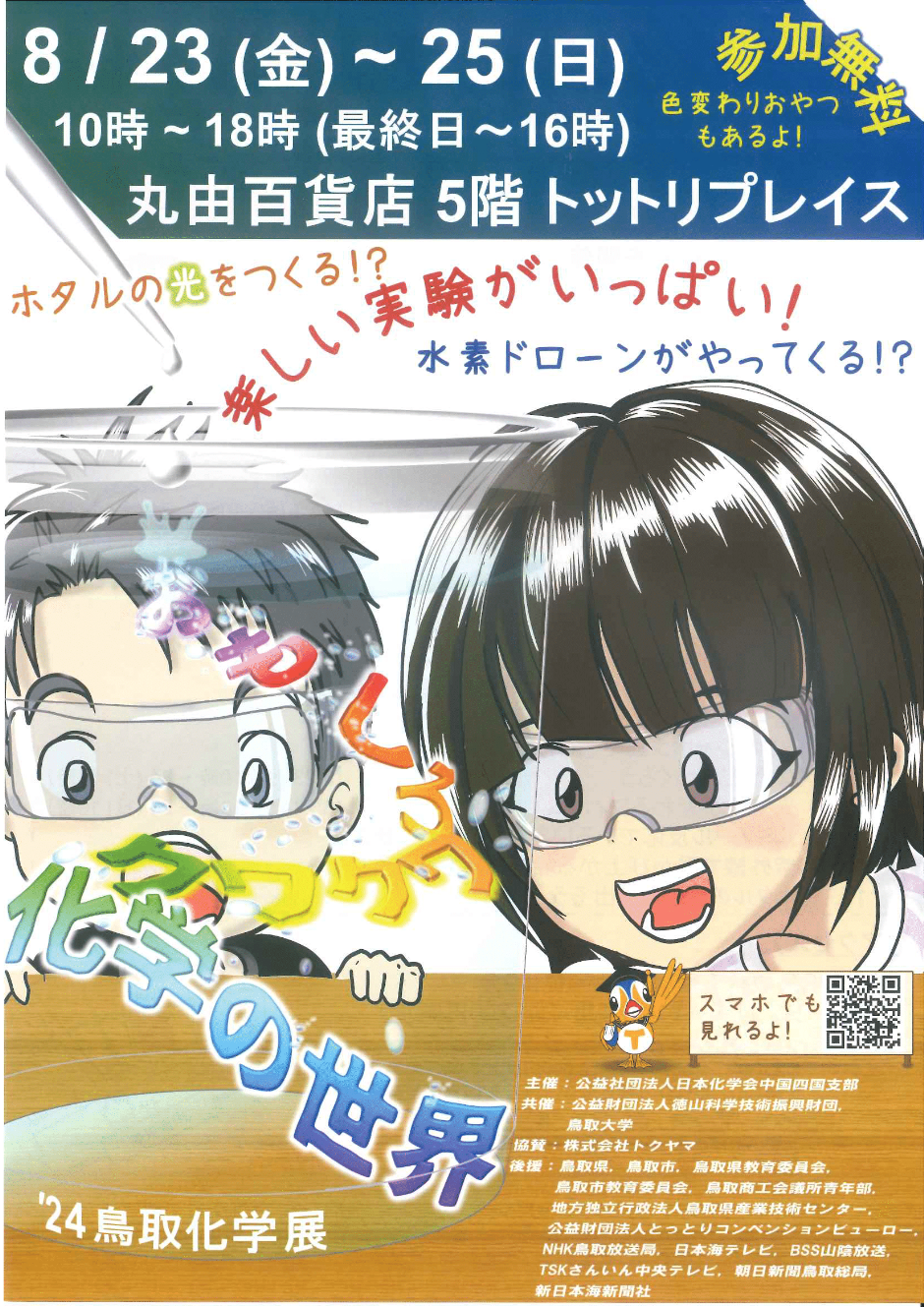 「おもしろワクワク化学の世界 24鳥取化学展」が8/23(金)から丸由百貨店5階トットリプレイスで開催されます。