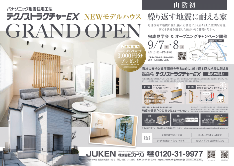 パナソニック耐震住宅工法テクノストラクチャーEX NEWモデルハウスGRAND OPEN