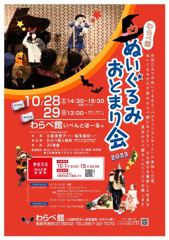 | 関連サイト | https://warabe.or.jp/event/stuffed-toy-lodge-warabekan-2023-10/ |