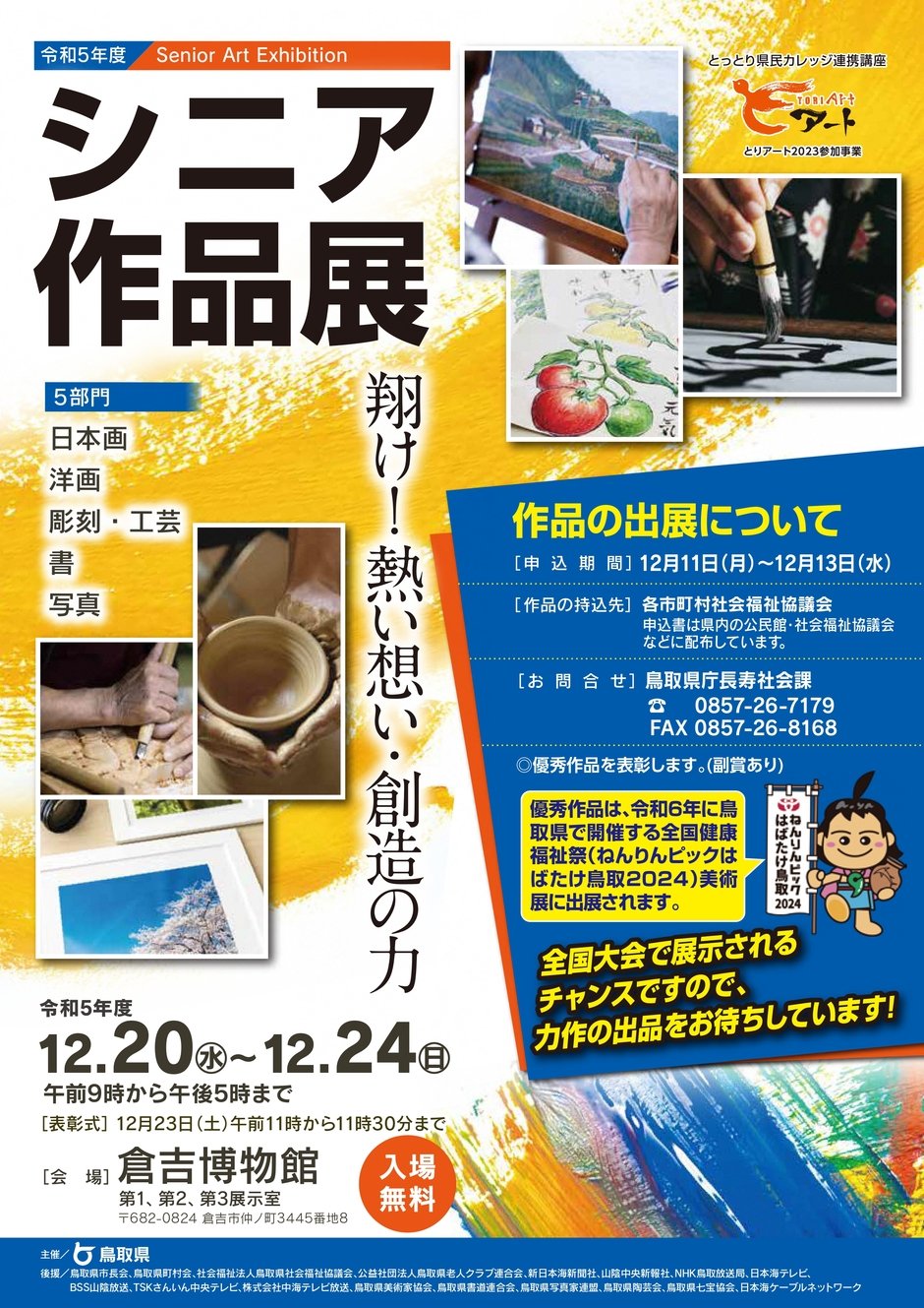 なお、優秀作品は、鳥取県代表として毎年全国持ち回りで開催されている全国健康福祉祭(ねんりんピック美術展大会)へ出品します。