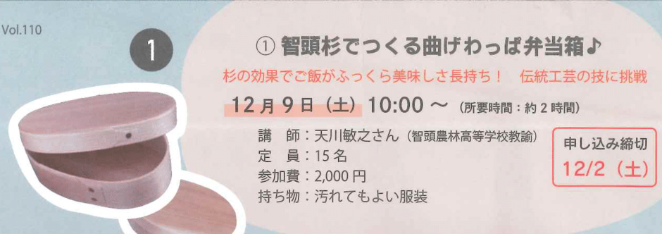 【ゆるっと 暮らしのワークショップ】①智頭杉でつくる曲げわっぱ弁当♪