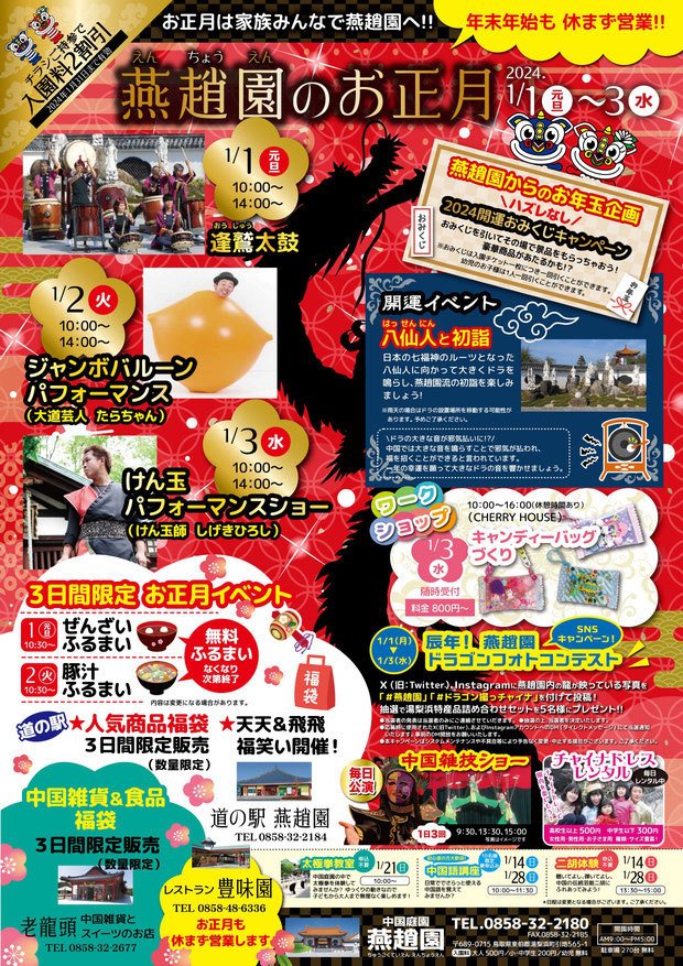 | 関連サイト | https://www.encho-en.com/2023/11/27/1%E6%9C%88%E3%82%A4%E3%83%99%E3%83%B3%E3%83%88%E9%96%8B%E5%82%AC-%E3%83%95%E3%82%A9%E3%83%88%E3%82%B3%E3%83%B3%E3%83%86%E3%82%B9%E3%83%88%E5%86%85%E5%AE%B9%E3%82%82%E3%81%93%E3%81%A1%E3%82%89%E3%81%8B%E3%82%89/ |