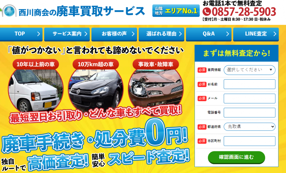 鳥取で人気の廃車買取サービスや、人気の廃車買取、廃車査定サービスもご紹介いたします。