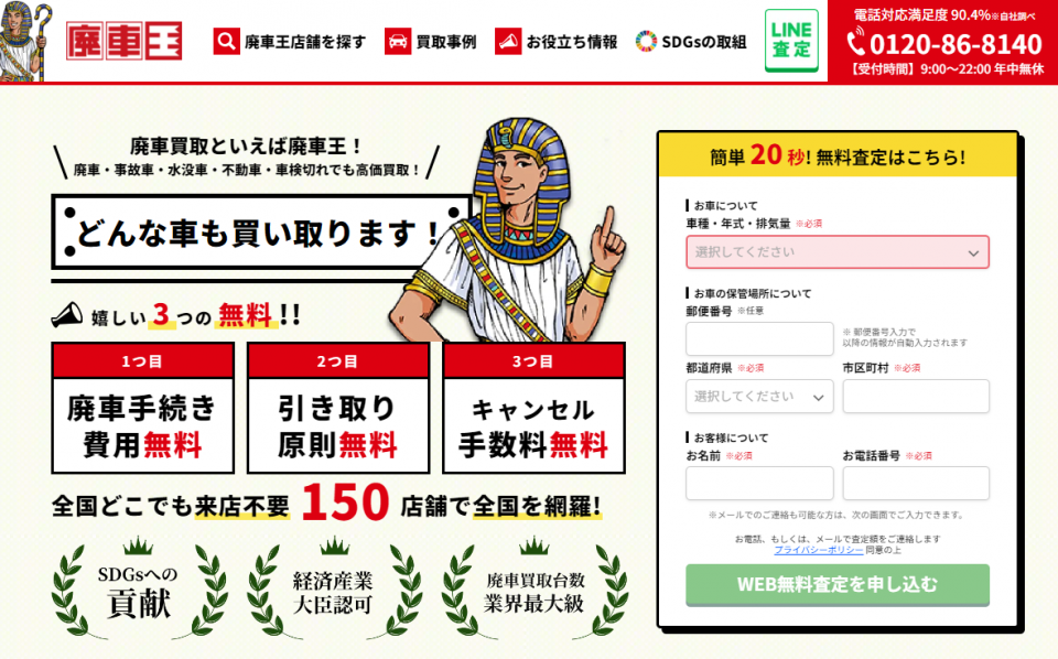 全国に150店舗ありTVCMでも有名。廃車王はNGP日本自動車リサイクル事業協同組合の関連会社株式会社NGPが運営しています廃車王も電話1本でご指定の場所まで引き取りに来てくれます