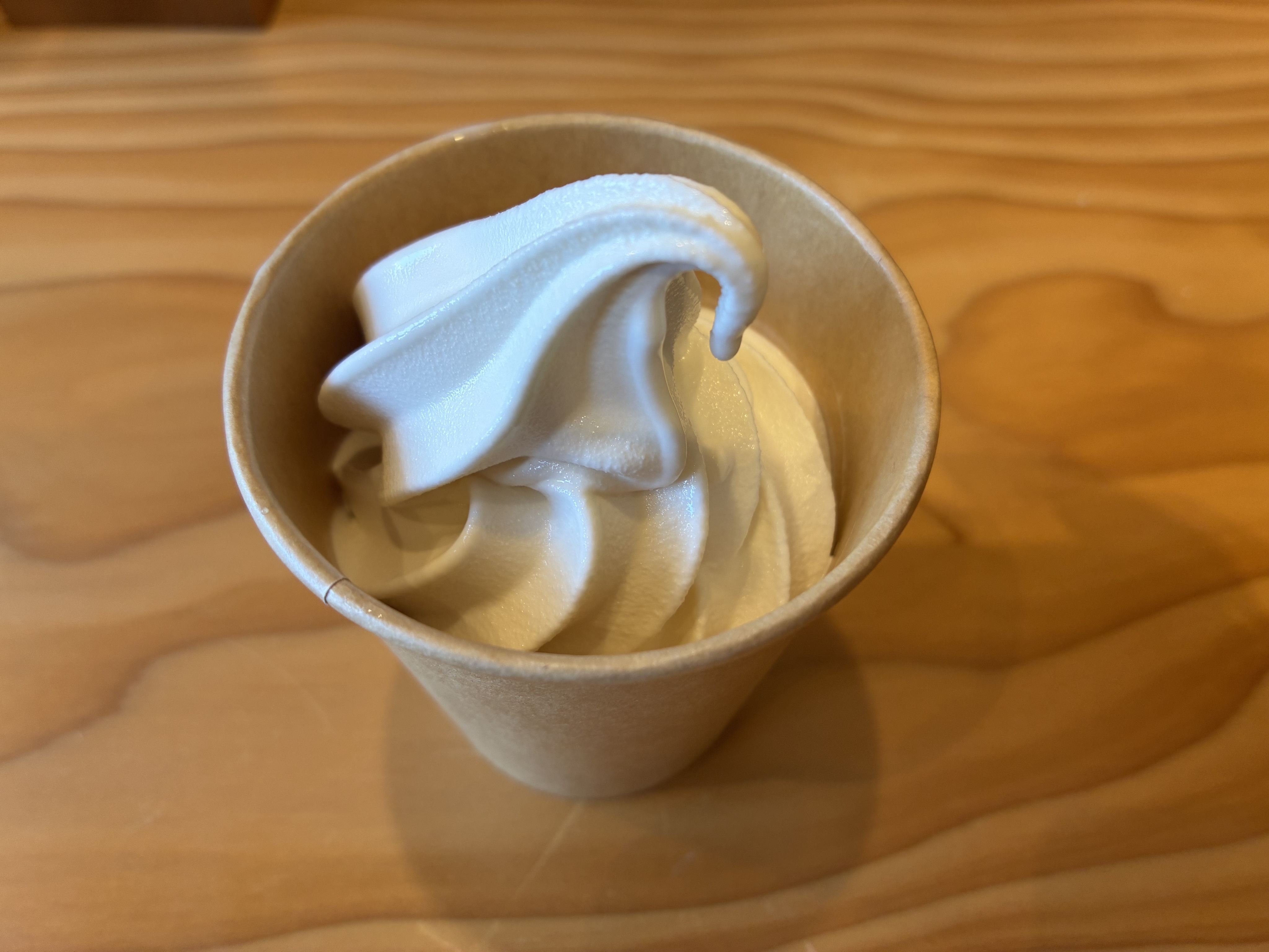 豆乳ソフトクリームは見た目よりも小ぶりながら、濃厚でしっかりと甘みがあり、子どもたちも「おいしい!」とあっという間に完食。量が多すぎない分、食後のちょっとしたデザートにもぴったり。